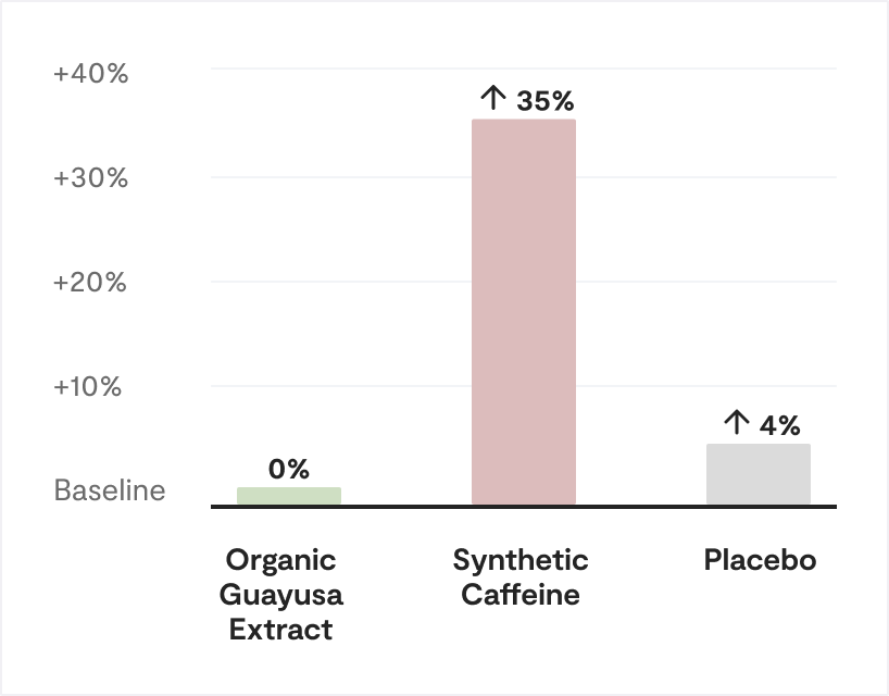 Unlike sugary energy drinks and sodas loaded with synthetic caffeine, studies show Organic Guayusa Extract gives you a natural energy boost with no increase in jitters, even after one hour.