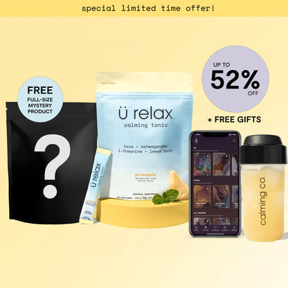 Ü Relax is a convenient, ready-to-mix wellness tonic designed to naturally relieve stress, lift your mood, and deeply relax you. Each serving takes 15-20 minutes to kick in for up to four hours of total calm. Every ingredient in our calming blend has been put to the test in placebo-controlled clinical trials for their stress-reducing properties. We’ve carefully selected each ingredient to craft a delicious, effective tonic that lasts.